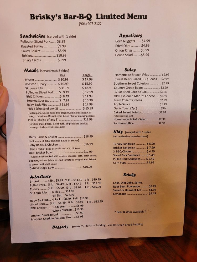 Welcome to Brisky's BBQ, located at 3009 N Ponce De Leon Blvd in St. Augustine, FL. This casual eatery offers a delightful culinary experience, perfect for families and groups alike. The menu features a variety of options, from tender boneless baby back ribs to smoky brisket, each crafted to satisfy every palate.